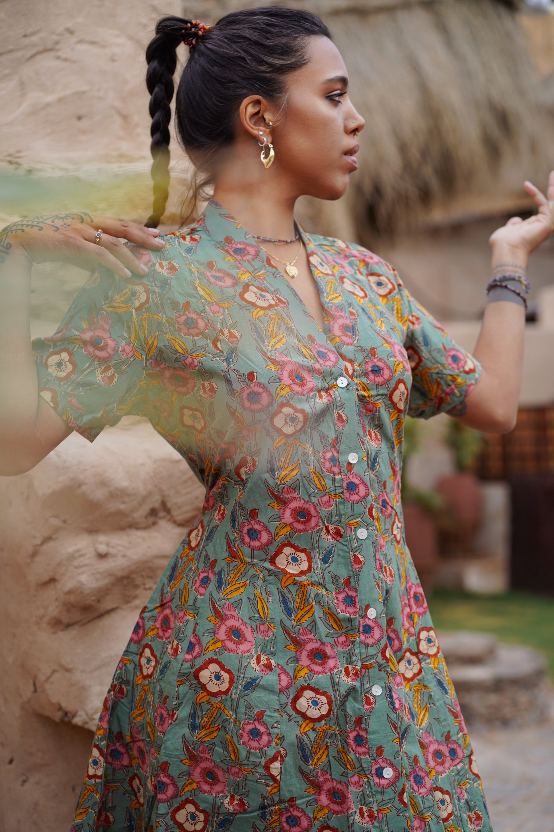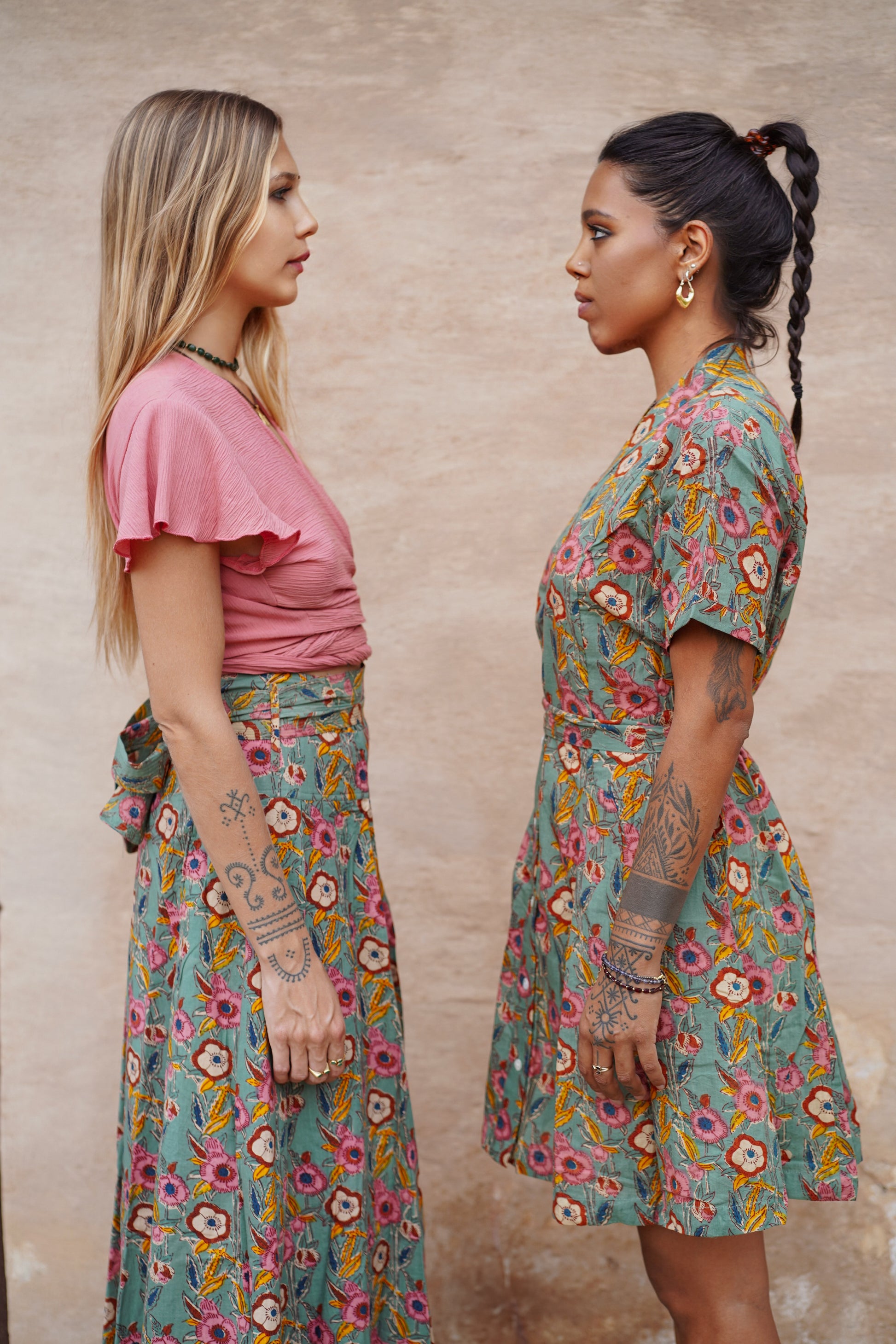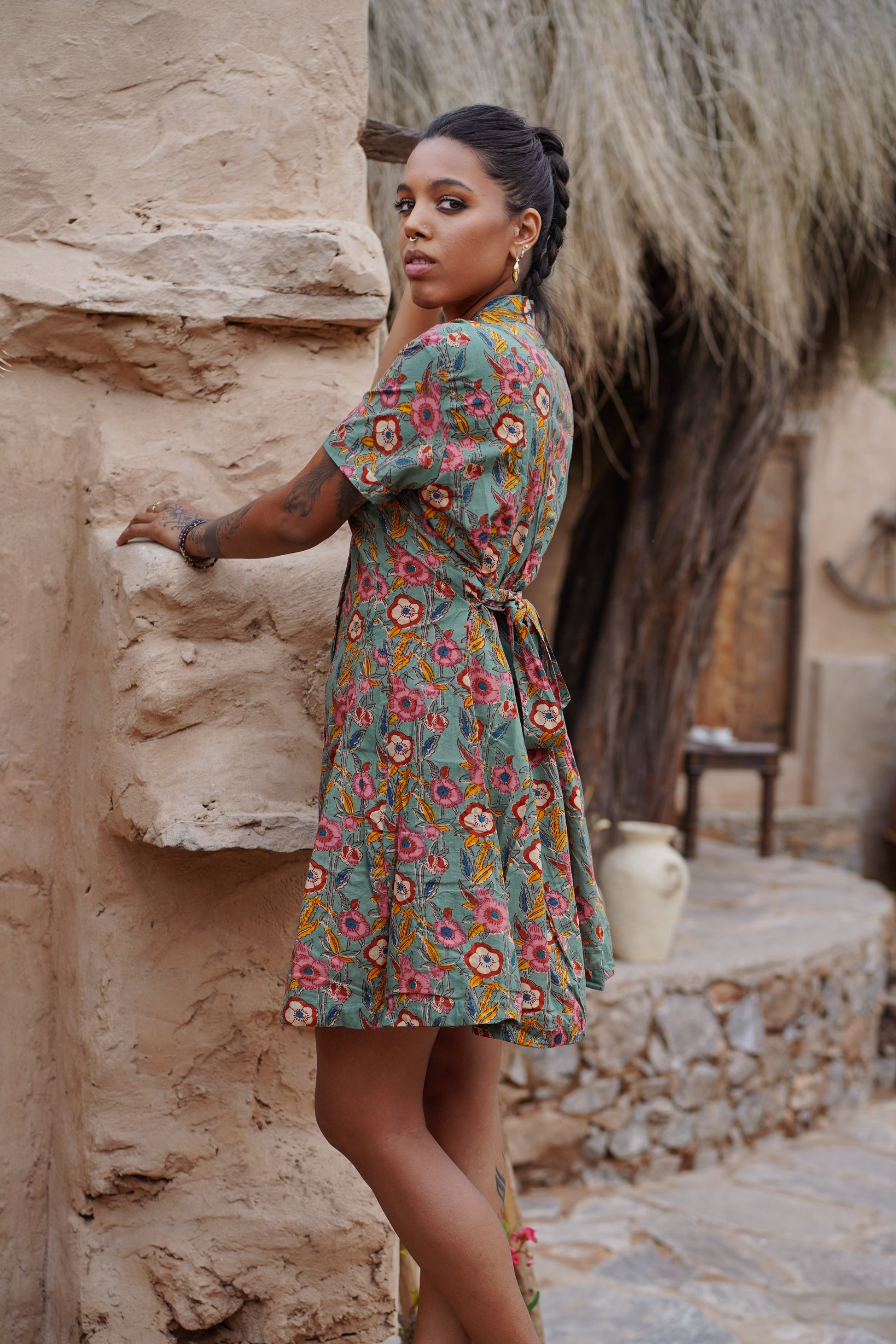 Une robe légère et élégante en coton fin, avec une coupe courte, une ceinture ajustable et des poches invisibles pour allier confort et féminité.