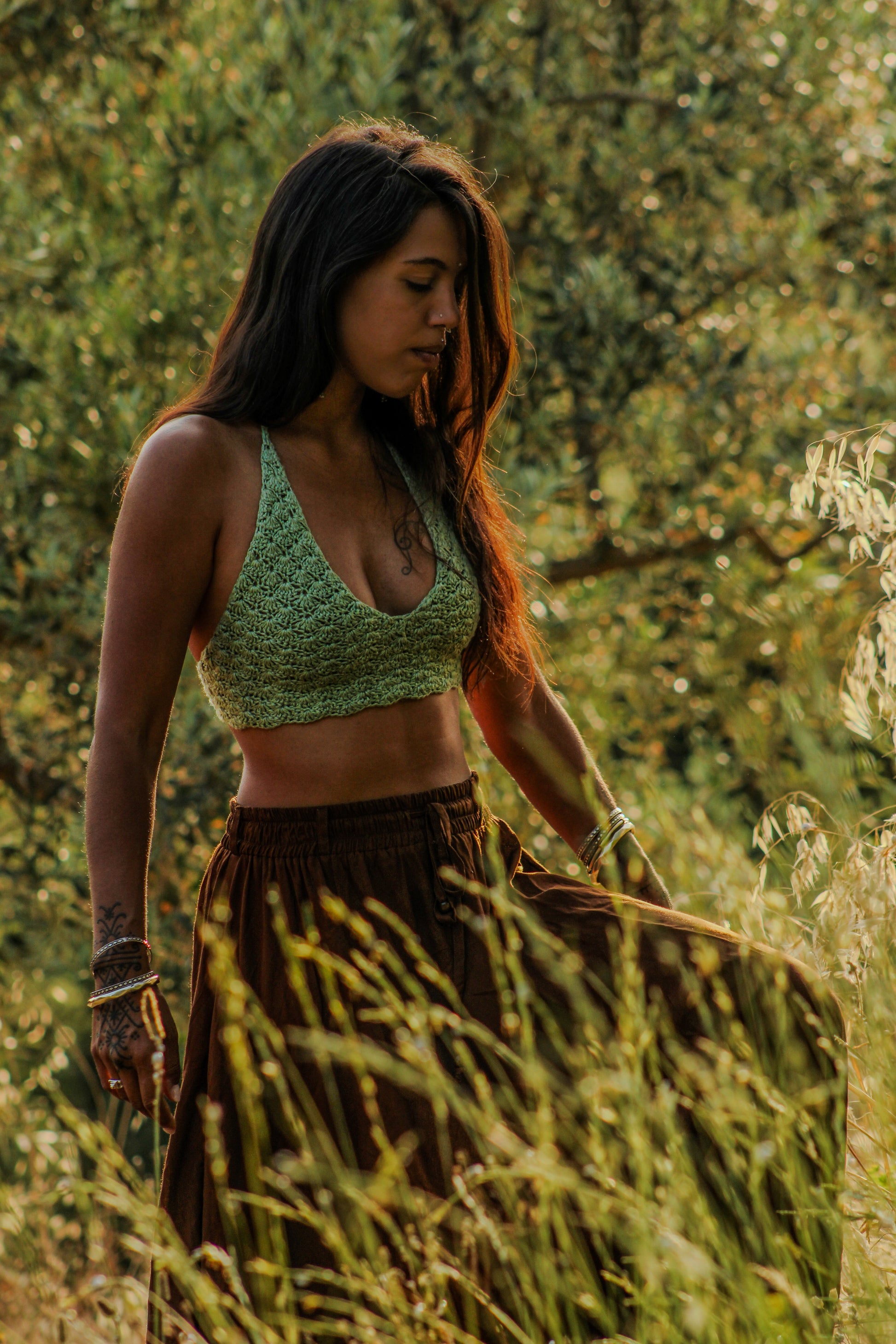Plongez dans l’univers bohème et nomade de Kalahaa avec le top en crochet Mermaid, une création entièrement faite main par la fondatrice de la marque durant ses voyages.